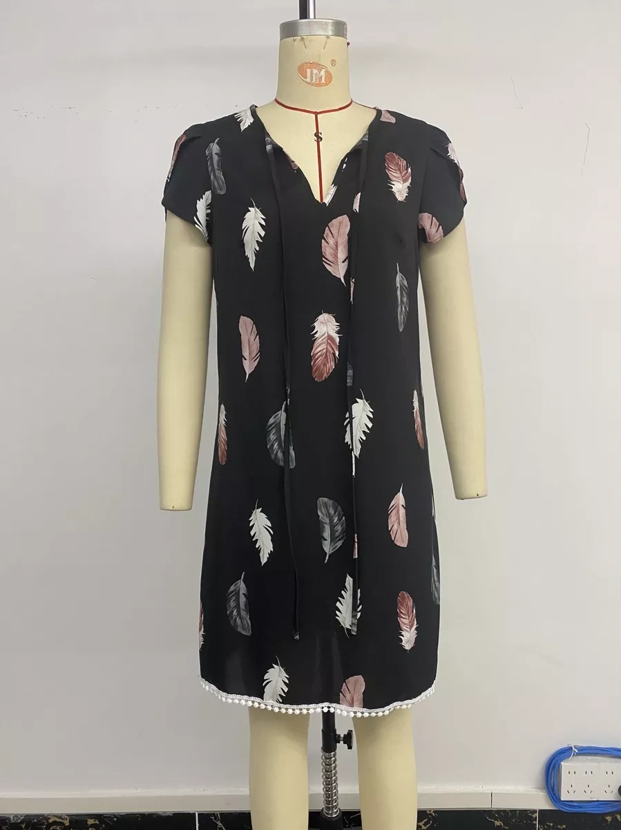 Gcarol Ofis İçin Yazlık Desenli Siyah Elbise 233616125 Siyah