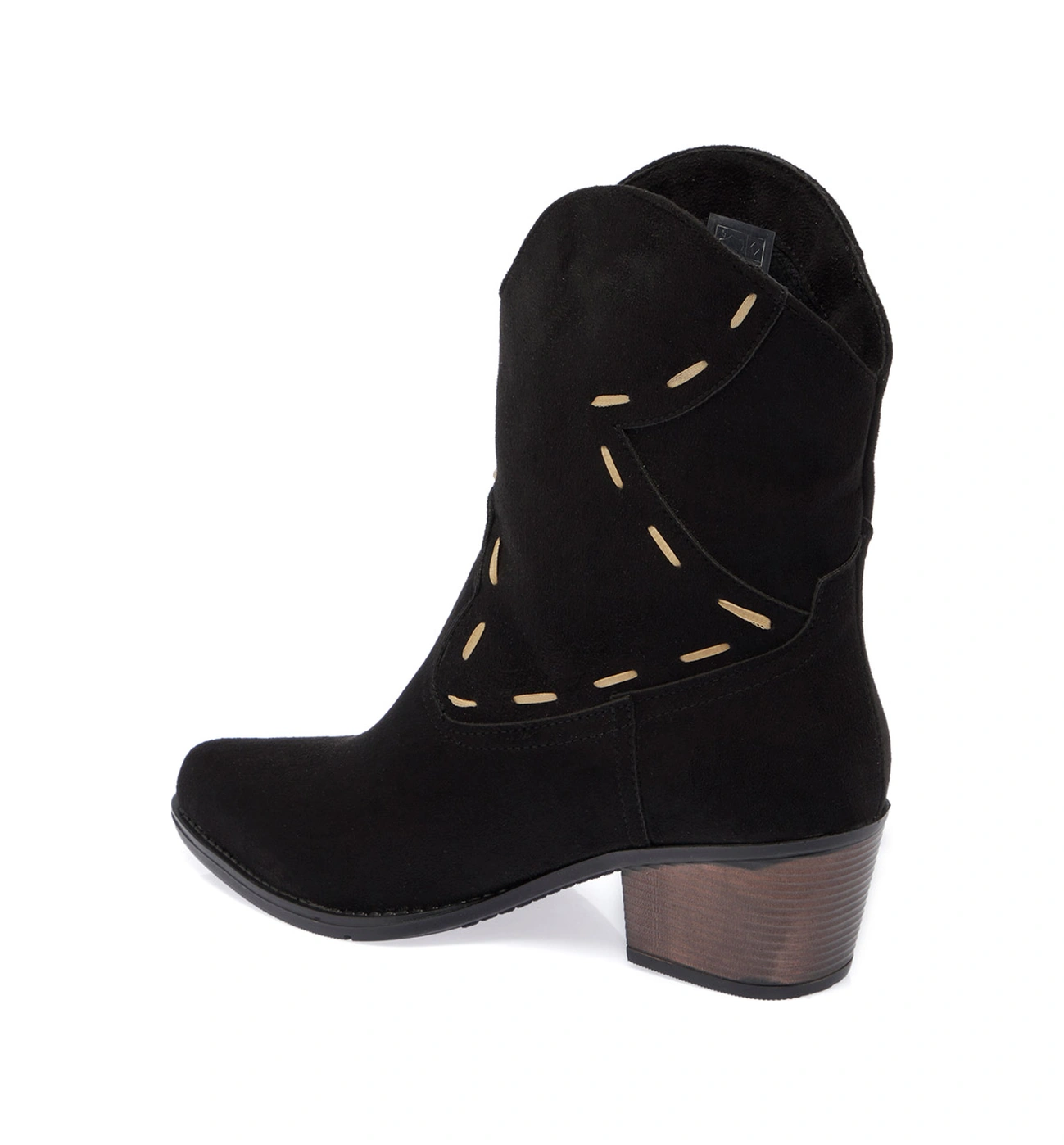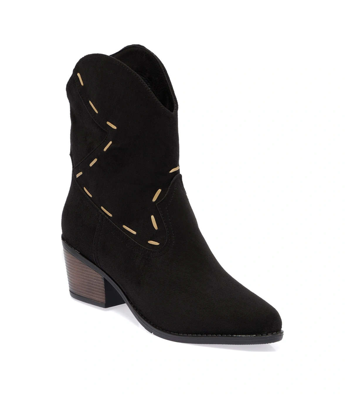 Gdt Ayakkabı Siyah Renk Süet Kalın Topuk Kadın Kovboy Bot Siyah
