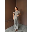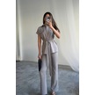 Ge Ticaret Çizgili Polyviskon Bluz - Pantolon Takım - Gri Gri