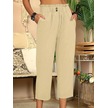 Ge Ticaret Kadın Bel Büzgü Ve Düğme Detay Kapri Keten Pantolon Bej