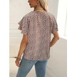 Ge Ticaret Kadın Kısa Kollu Kolları Volanlı Baskılı Süprem Bluz Pembe
