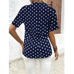 Ge Ticaret Kadın Kısa Kollu Yakadan Fermuarlı Puantiyeli Uzun Dokuma Viskon Bluz Lacivert