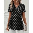 Ge Ticaret Kadın Kısa Kollu Yakadan Fermuarlı Puantiyeli Uzun Dokuma Viskon Bluz Siyah