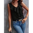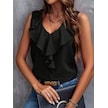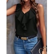 Ge Ticaret Kadın Sıfır Kollu V Yakalı Volanlı Ithal Krep Bluz Siyah