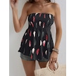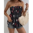 Ge Ticaret Kadın Yaprak Desenli Göğsü Gipeli Mosskrep Straplez Bluz Siyah