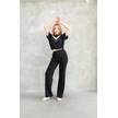 Ge Ticaret Osy Modal Yumuşak Dokulu Kumaş Bisiklet Yaka Parçalı Detaylı Kısa Kollu Takım - Siyah Siyah