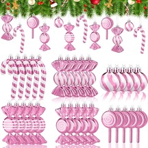 Geeksen 30 Parça Plastik Noel Şeker Süs Seti Pembe-beyaz: Nane Şekeri, Asa Şekeri, Çubuk Şeker Figürleri