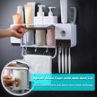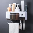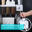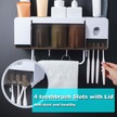 Maiyame Duvar Tipi Otomatik Diş Macunu Sıkma Aparatı - 5 Fırça Yuvası, 4 Bardaklık Aile Seti Yapışkanlı Beyaz