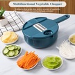 Geeksen Mavi Çok İşlevli Kalın Dairesel Süzgeçli Sebze Dilimleyici - 6 Bıçak/12 Fonksiyon Halka Tutucu, Eldiven, Soğutucu Sepet Mavi