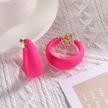 Geeksen Retro Stili Bold Açık Çemberli, Piercingsiz Kullanim, Konforlu Kanca Desenli, Pembe-altın Aksesuar Küpe Rose