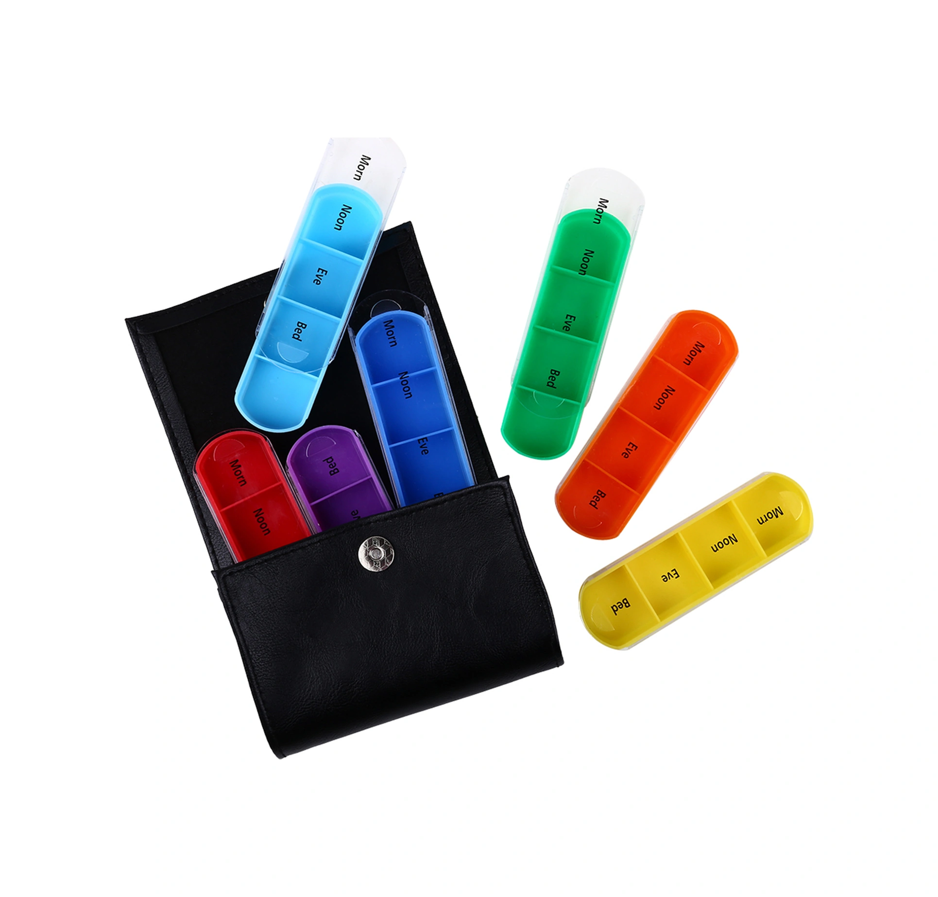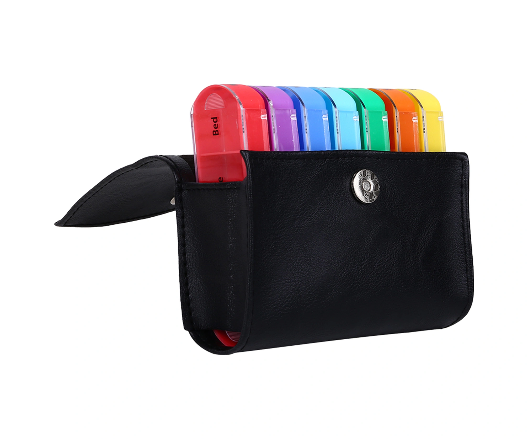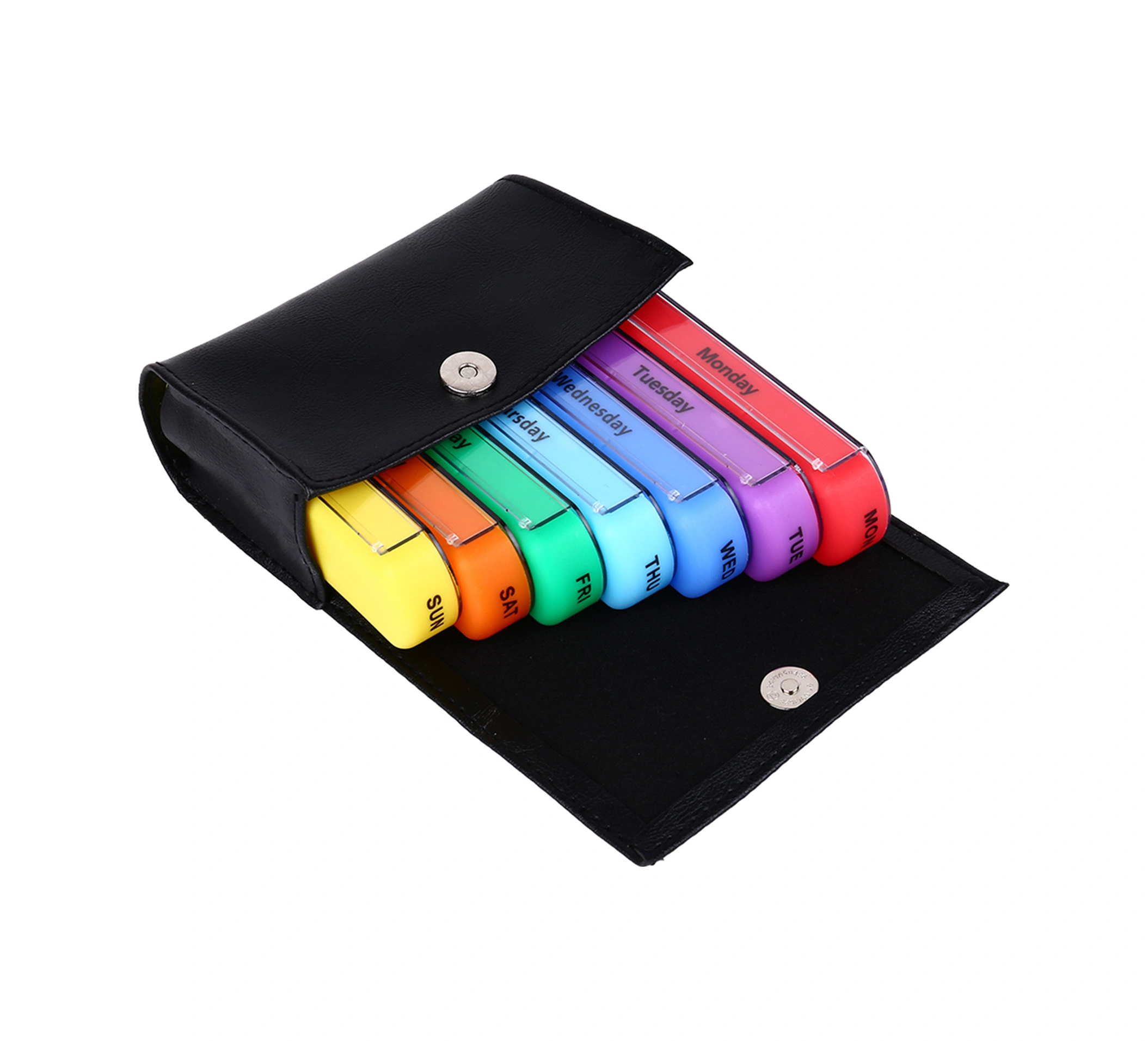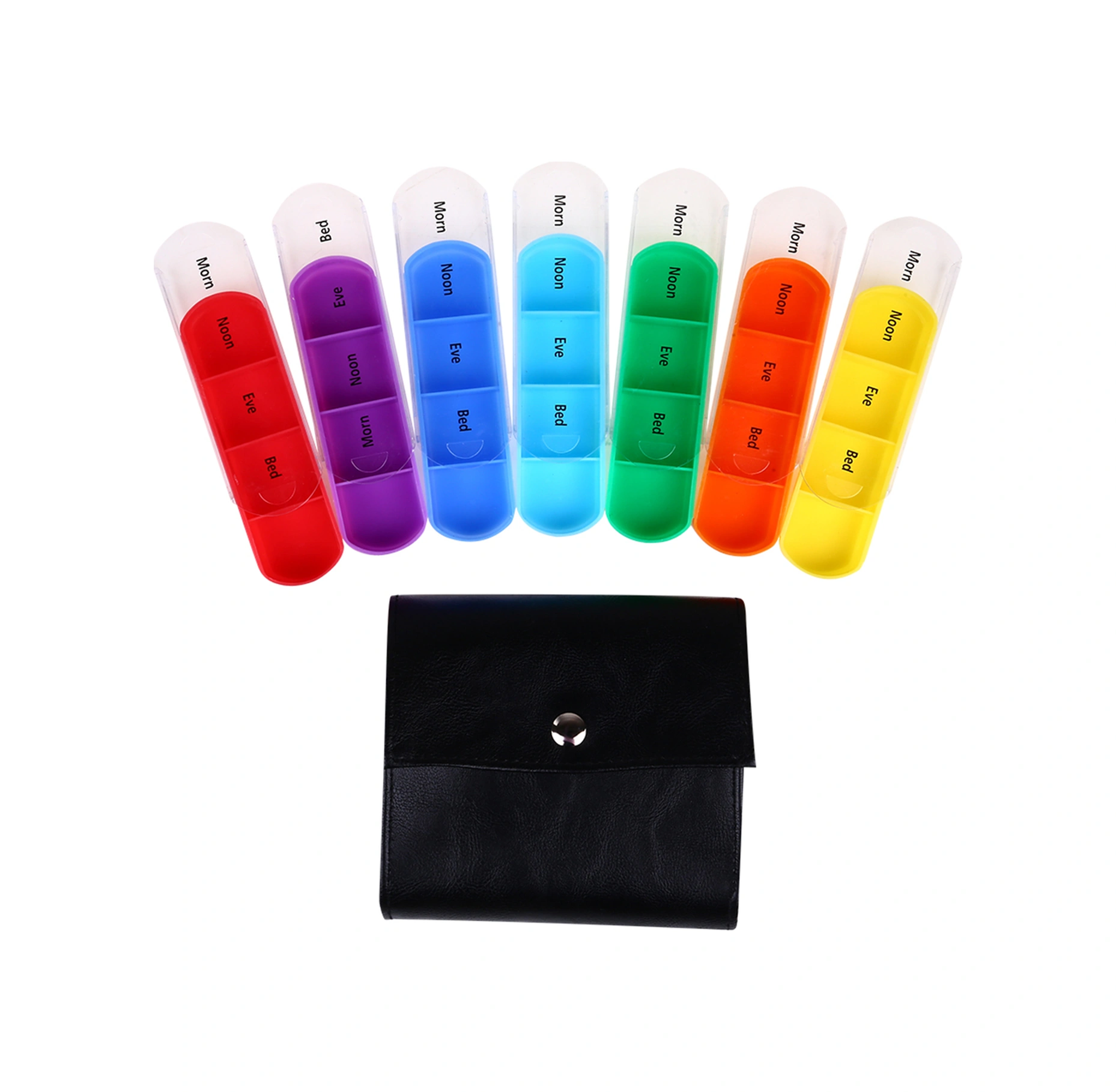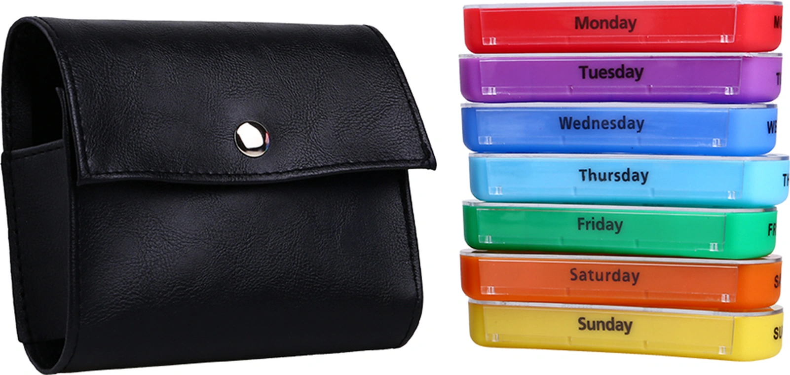 Geeksen Siyah Pu Deri İçerisinde 7 Adet 4 Bölmeli Mini İlaç Kutusu - Zaman Etiketli Taşınabilir İlaç Depolama Kutusu Diğer