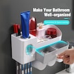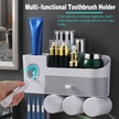 Yifomall Duvar Tipi Otomatik Diş Macunu Dispenseri - 5 Fırça Yuvası, 4 Bardaklı Hijyenik Organizatör Beyaz