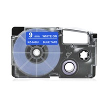 Geekyou 9mm Pet Etiket Bandı - Suya Dayanıklı, Kuru Renkler, Yoğun Yapışkanlık - Casio Yazıcılar İçin Kz-9abu Mavi Arka Plan Beyaz Yazı