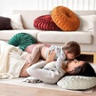 Geekyou Bej Kadife Kabak Desenli Yuvarlak Yastık - Ev Dekorasyon Kırık Kemerli Yorgan - Koltuk Sandalye Yatak Araba Uyumlu Beyaz