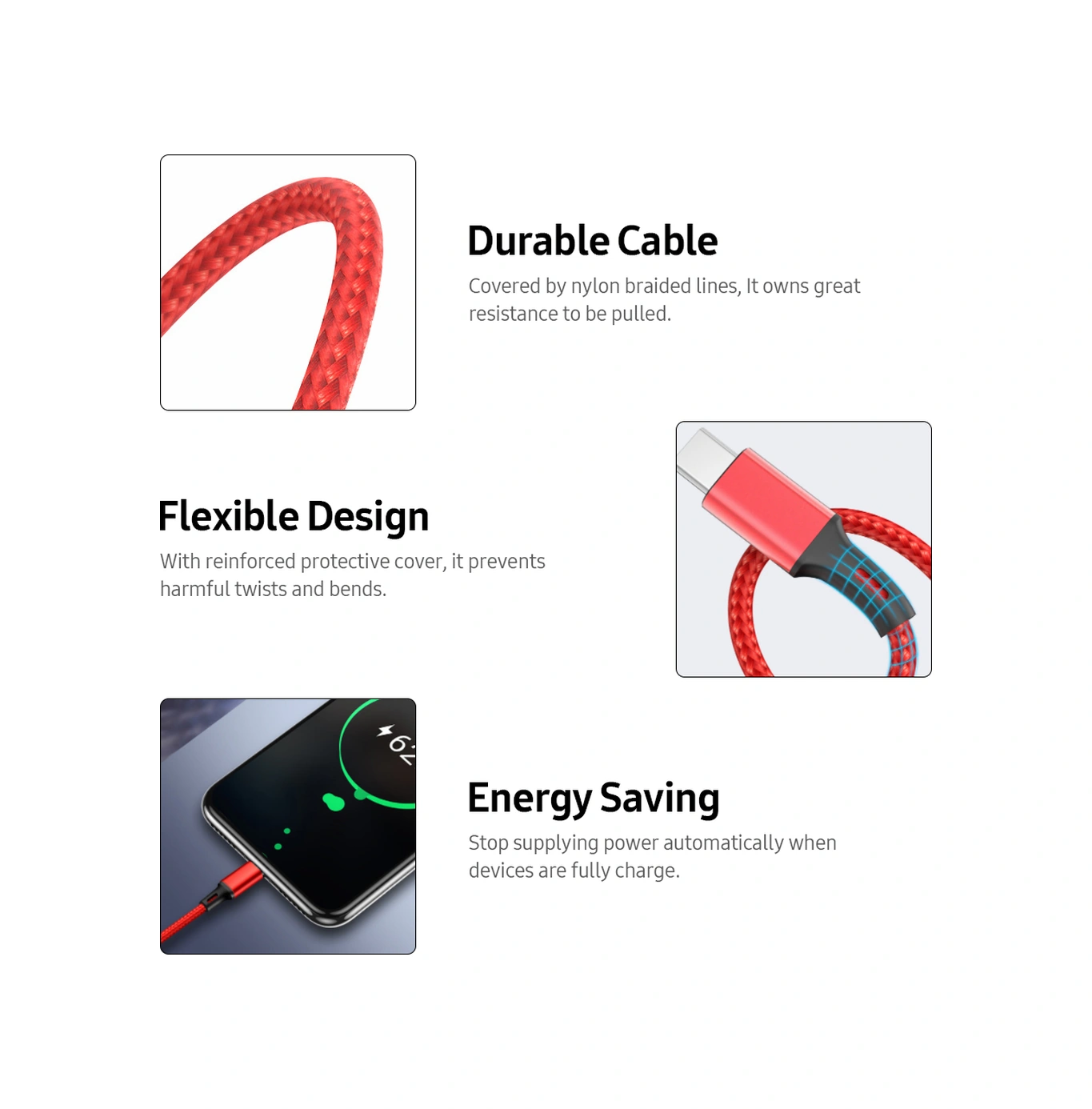 Geeroyoo 3'lü Usb Kablo: Type-c, Micro Usb Ve İphone Uyumlu, Nilon Örgü, 2.4a Hızlı Şarj, 1.2m, Siyah, Dayanıklı, Otomatik Kesme Fonksiyonu