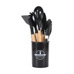 Geeroyoo Ahşap Saplı Silikon Mutfak Gereçleri 12'li Set - Teflon Tencere Uyumlu, Lavabo Güvenli, Organizasyon Kova İle Siyah Diğer