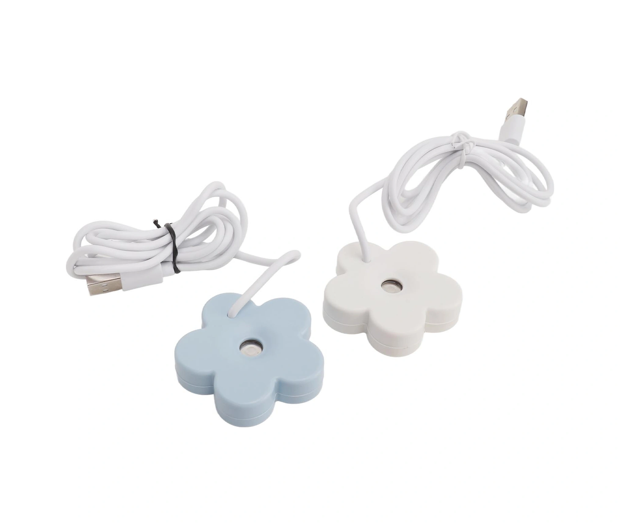 Geeroyoo Beyaz Ve Mavi Mini Çiçek Desenli Usb Nemlendirici, Ev Ve Araç İçin Taşınabilir, Su Yokken Otomatik Kapatma, Sessiz Çalışma, Ipx7 Su Geçirmez 2 Adet Paket