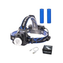Geeroyoo Dış Mekan Balıkçılığı Ve Kamp İçin Su Geçirmez, Şarj Edilebilir, Yakın-uzak Yakınlaştırılabilir Led Baş Feneri T6, 2 Pil + Şarj Kablosu