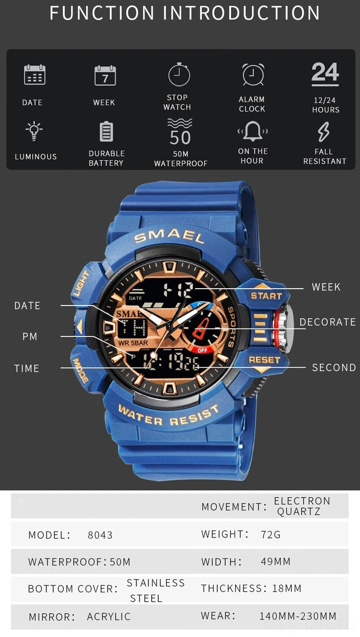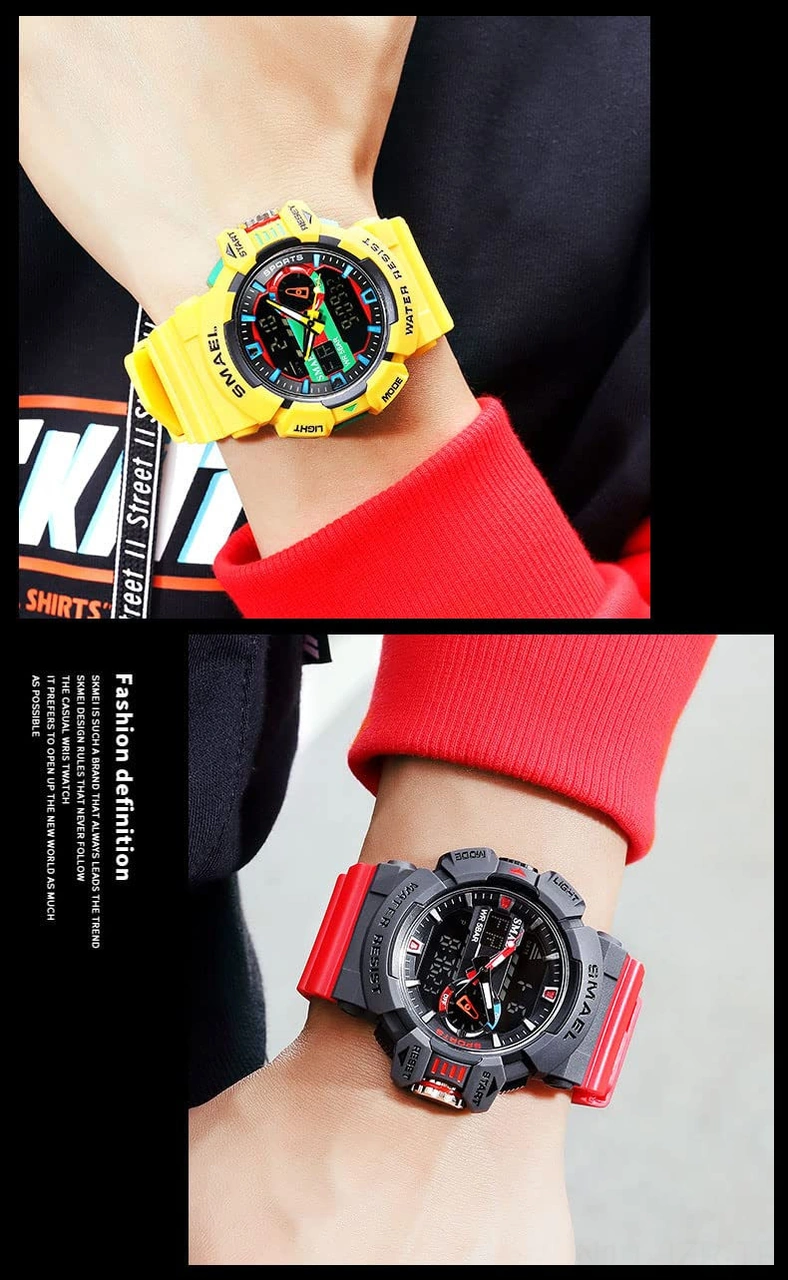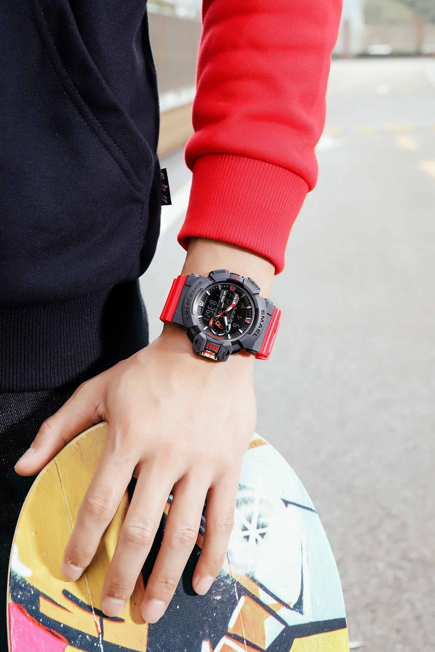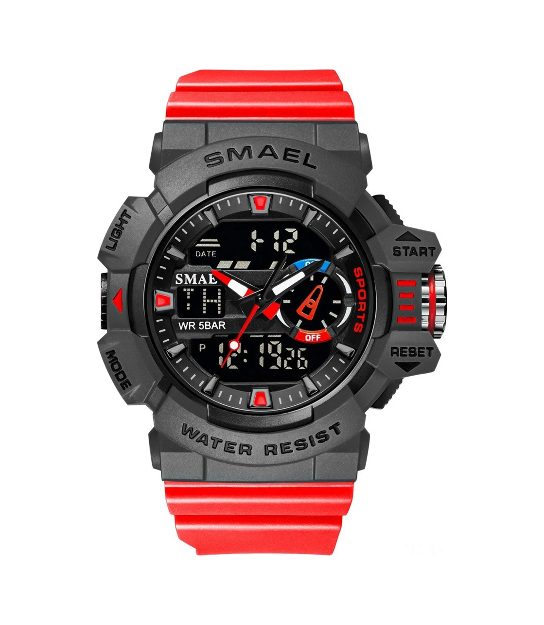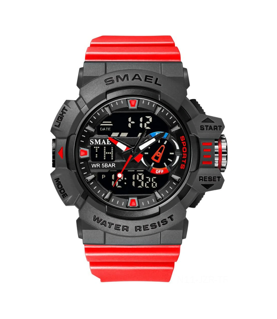 Geeroyoo Erkekler İçin Spor Su Geçirmez Saat - Duraklayıcı, İki Zamanlı, Alarm, Led Işık, 50m Su Dayanıklı, Siyah-kırmızı