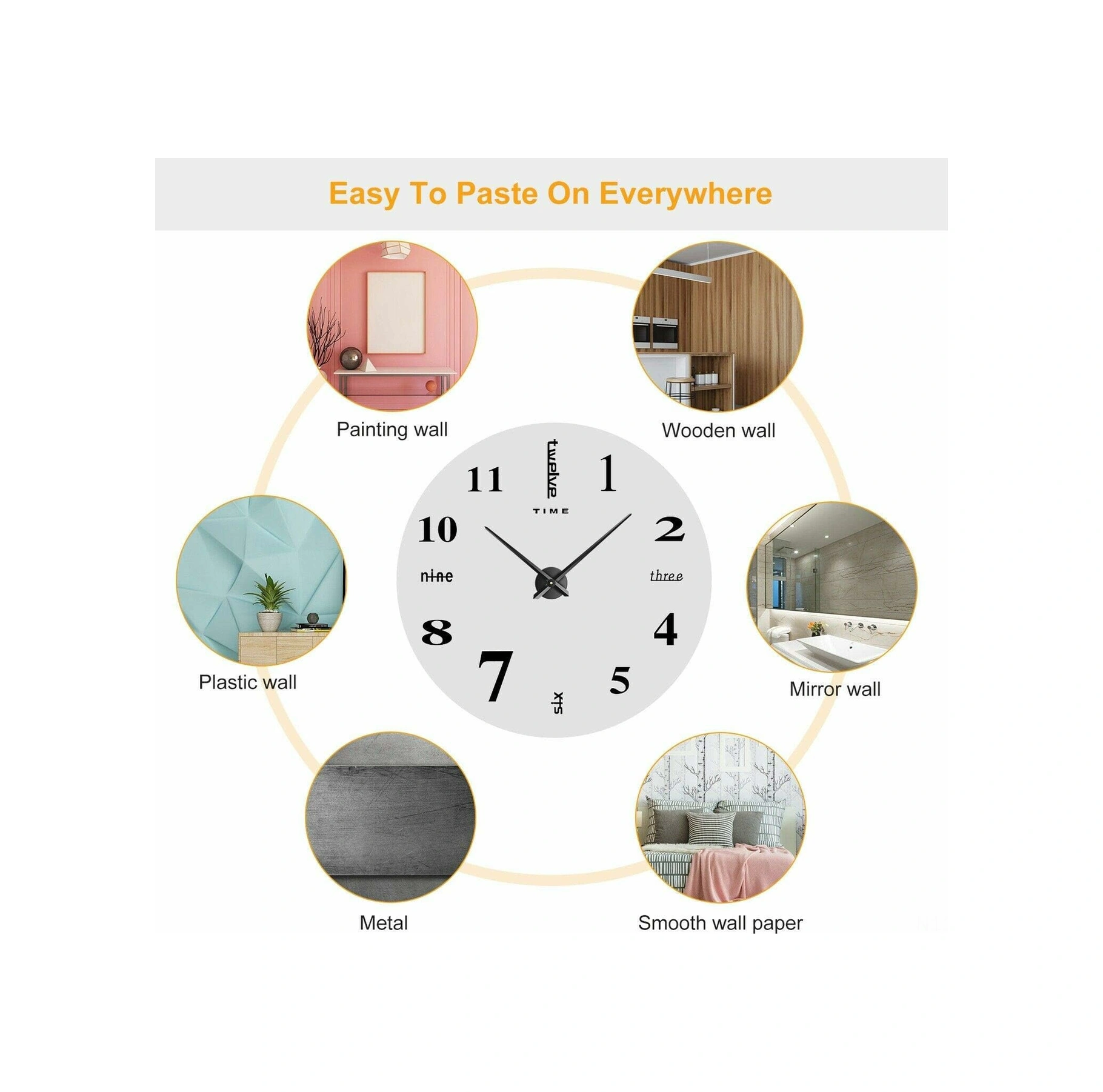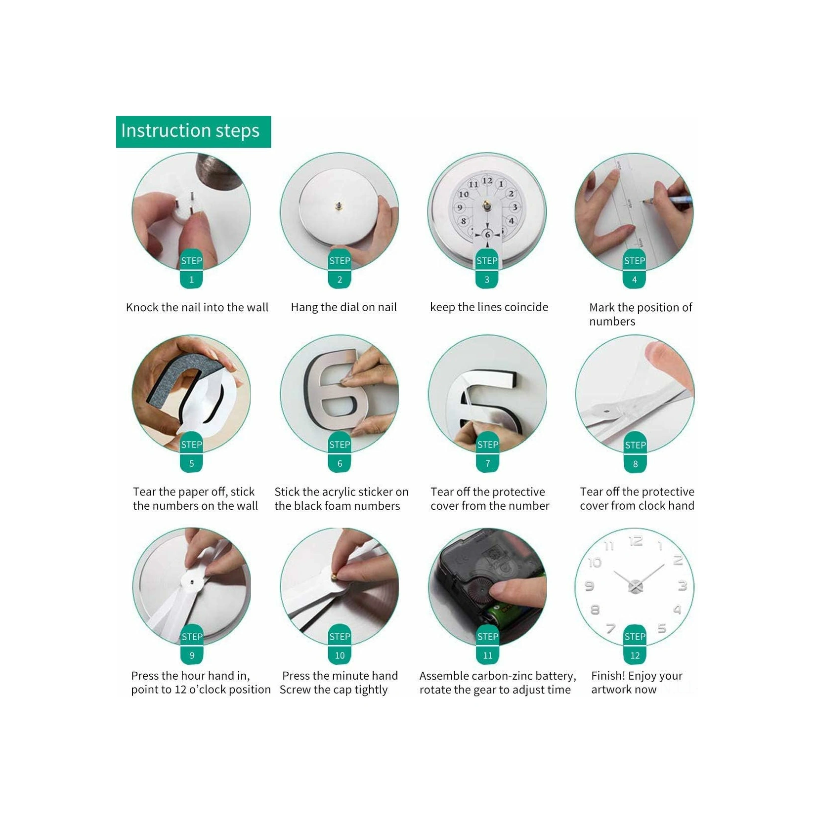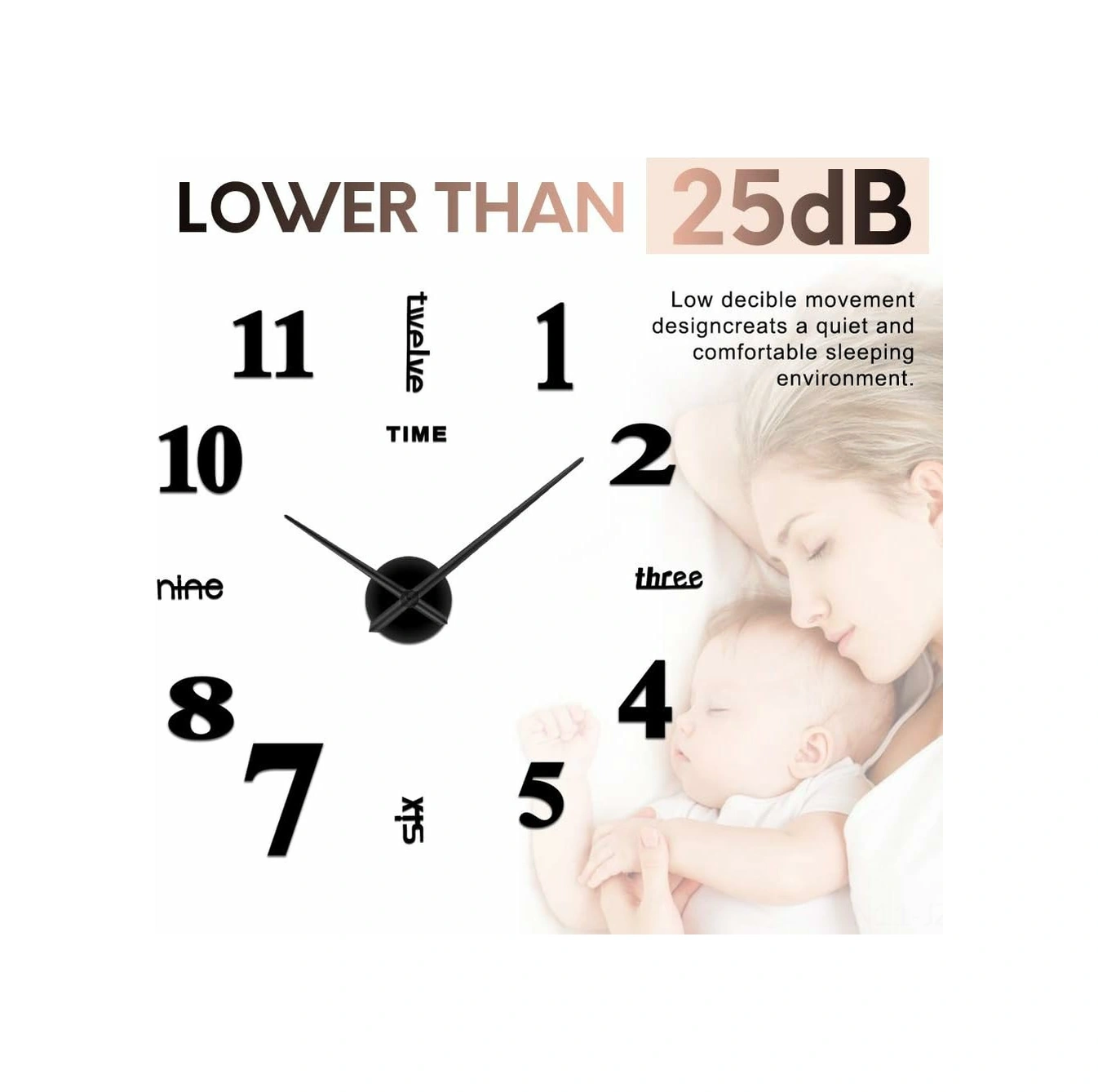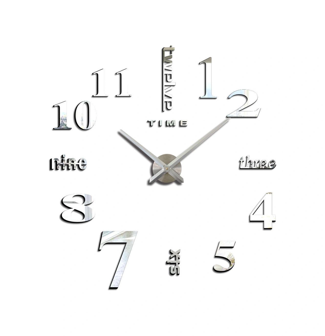 Geeroyoo Gümüş Modern Sessiz Dıy 3d Sticker Büyük Duvar Saati - Ev Ofis Dekorasyonu, Kolay Kurulum, 70-120cm Boyut Aralığı Çok Renki