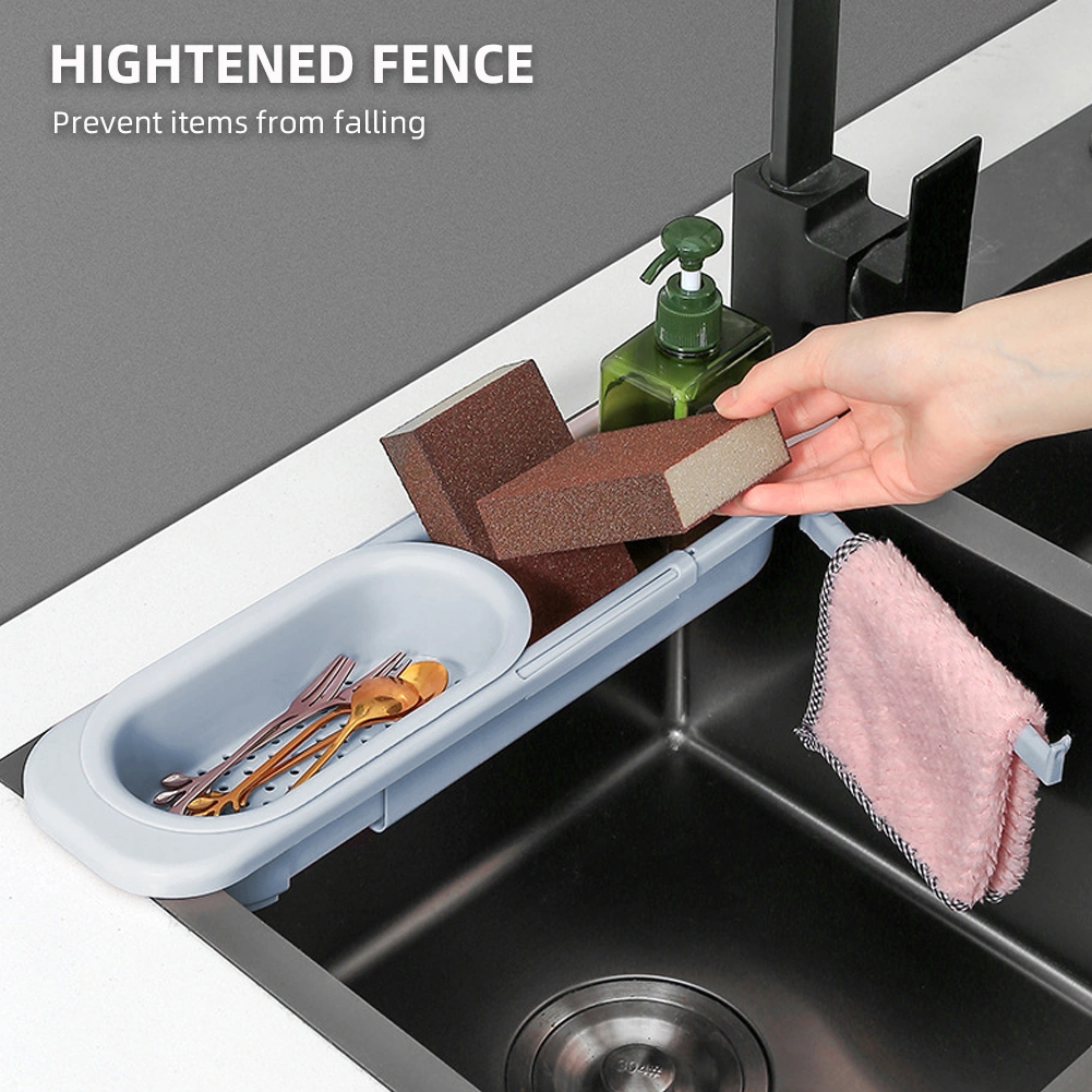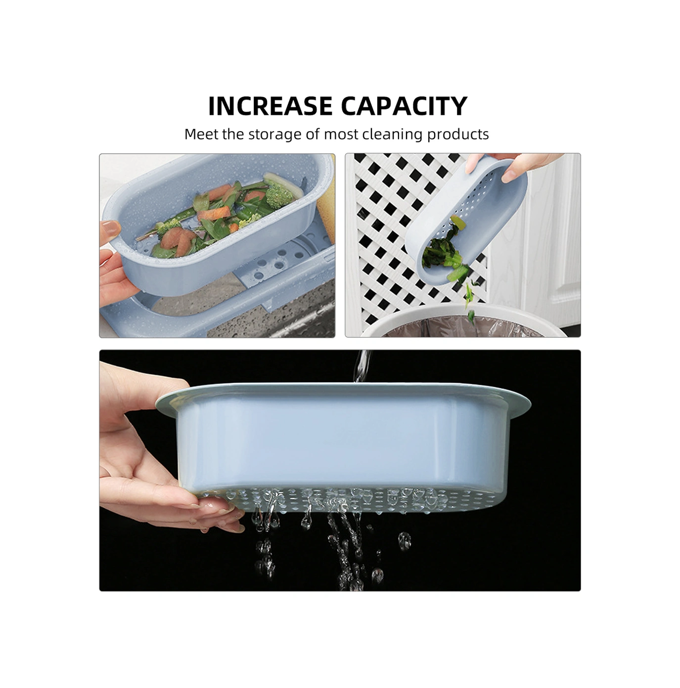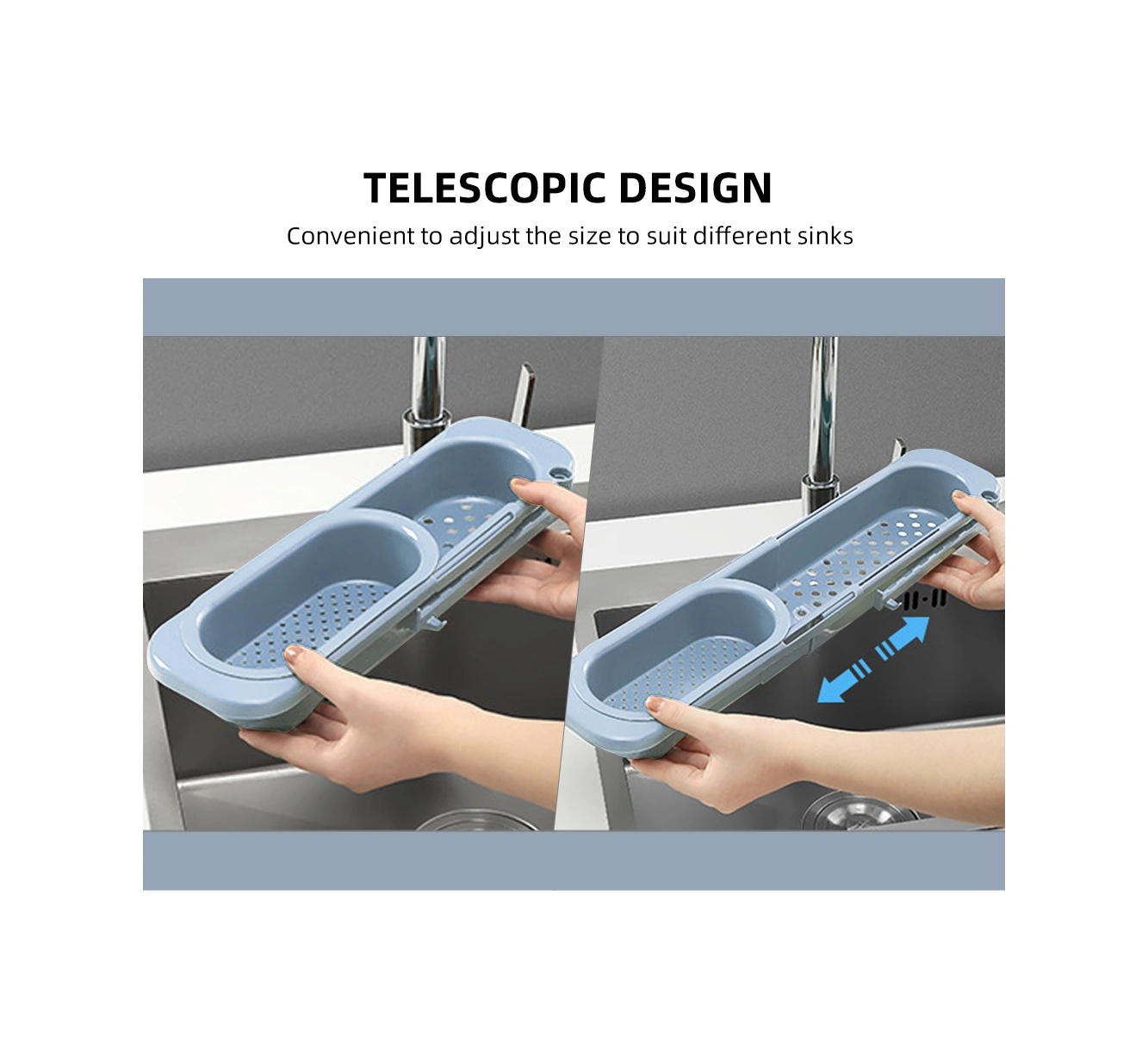 Geeroyoo Mavi Gri Genişletilebilir Sıvı Filtreli Lavabo Sepeti - Bölmeli Su Çıkarma, Havlu Asma Barı Ve Mutfak Malzemeleri Depolama Gri - Mavi