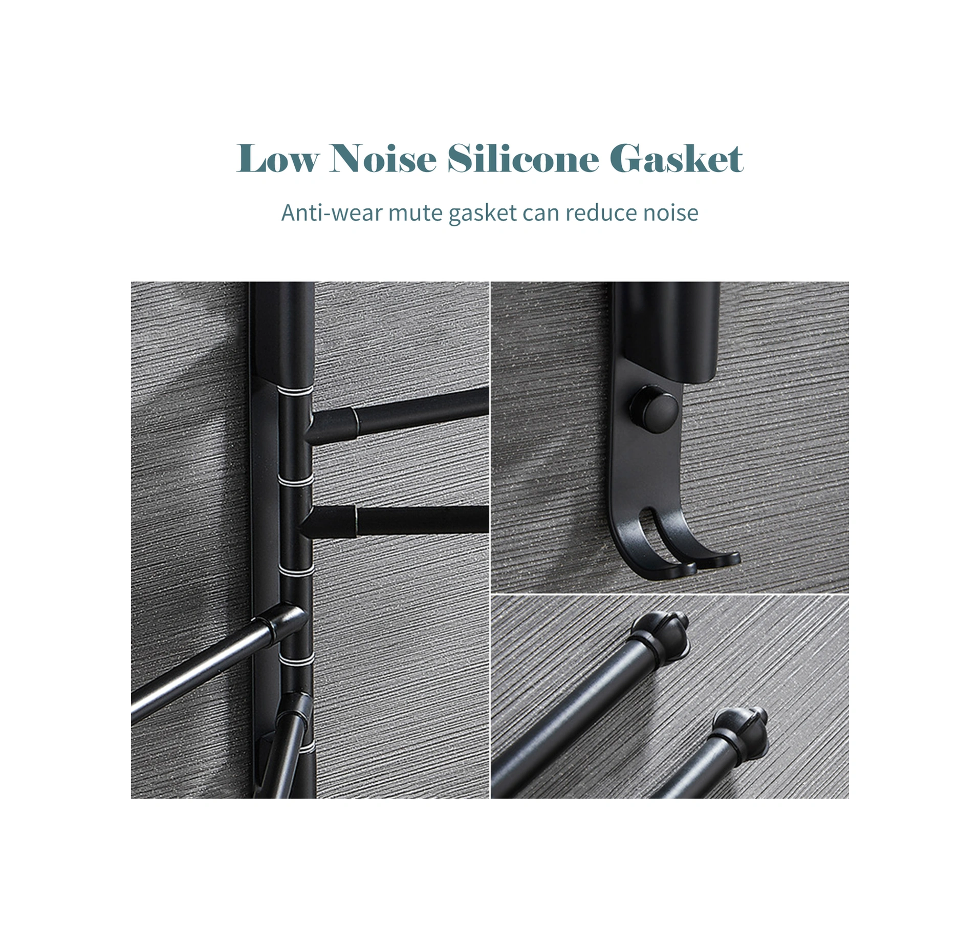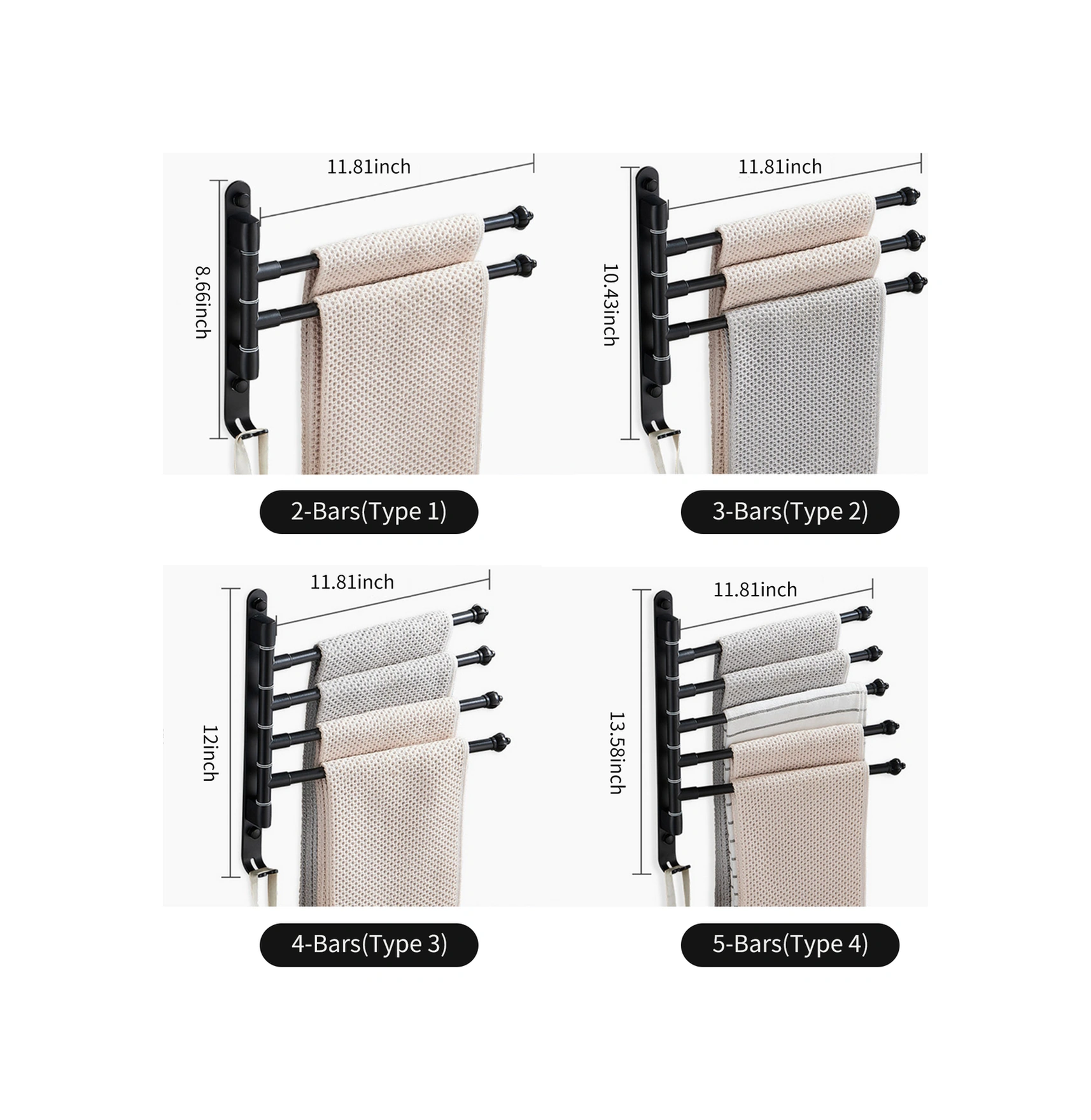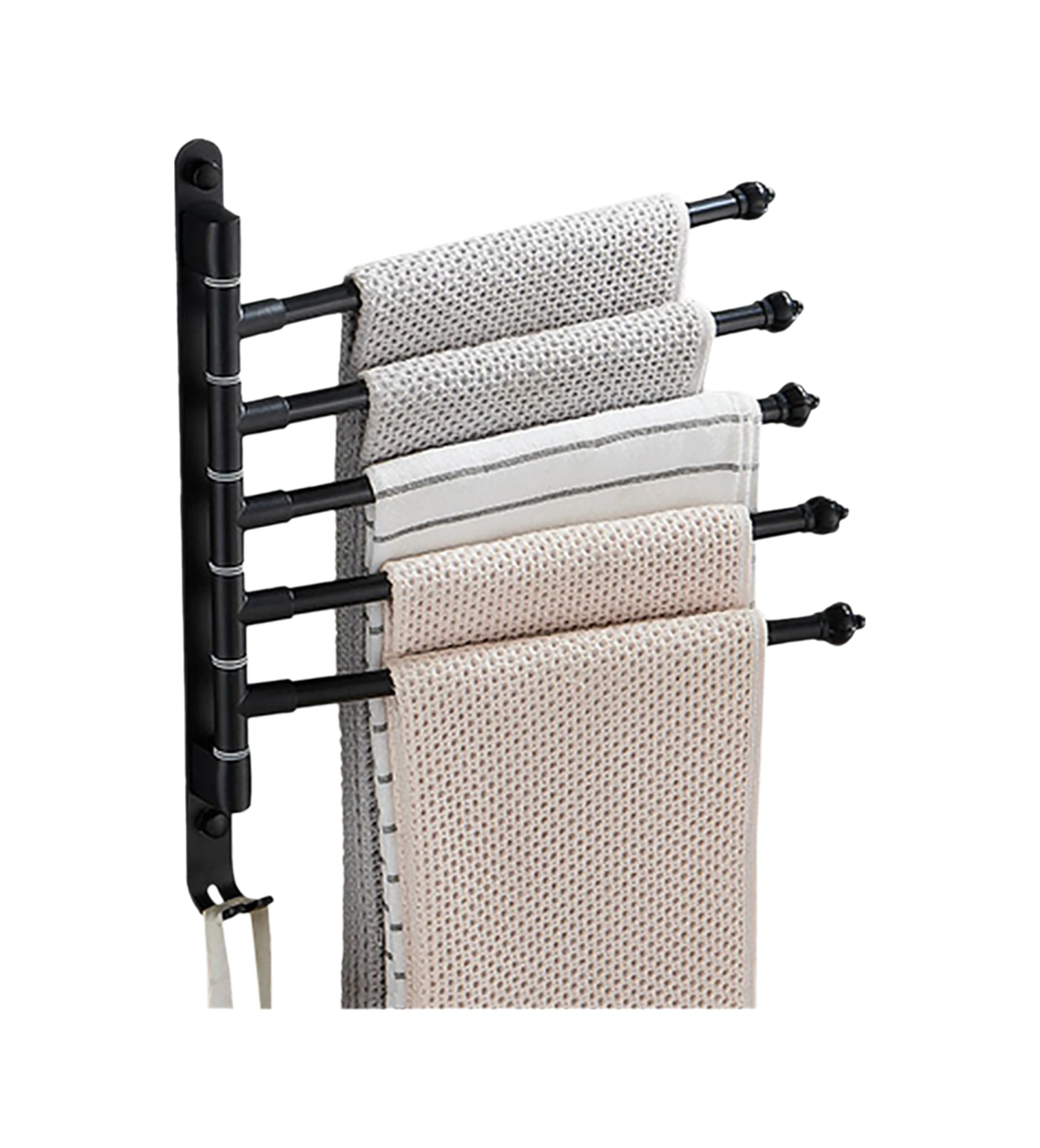 Geeroyoo Siyah Alüminyum 5 Çubuklu 180 Dönebilen, Delme/delmesiz Montajlı, Kancalı Pratik Havlu Rafı 30cm Siyah
