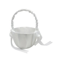 Gelinlik Çiçek Sepeti - Beyaz Saten, Kurdele Ve Kristal Boncuk Dekorasyonlu, Çiçek/kiraz Dolu, Nikah Töreni İçin Çiçek Kızı Sepeti