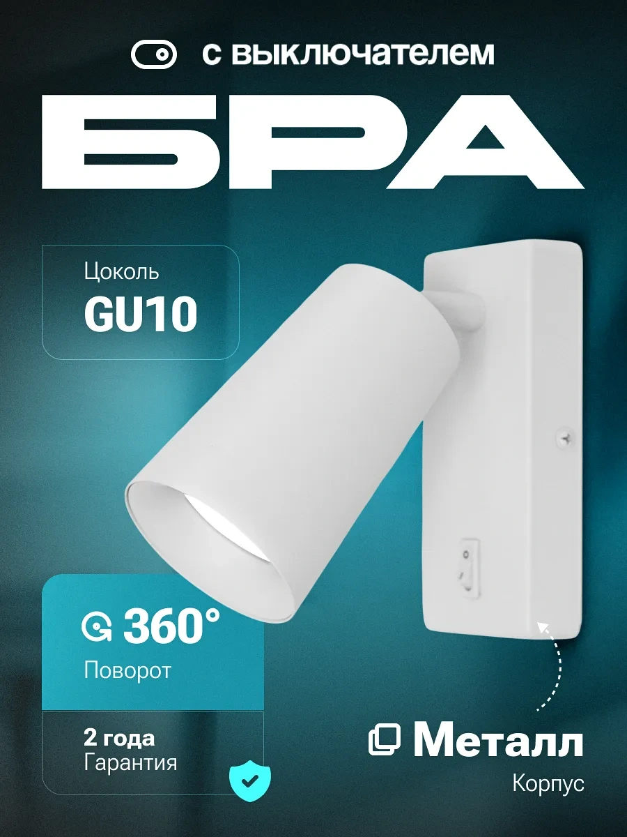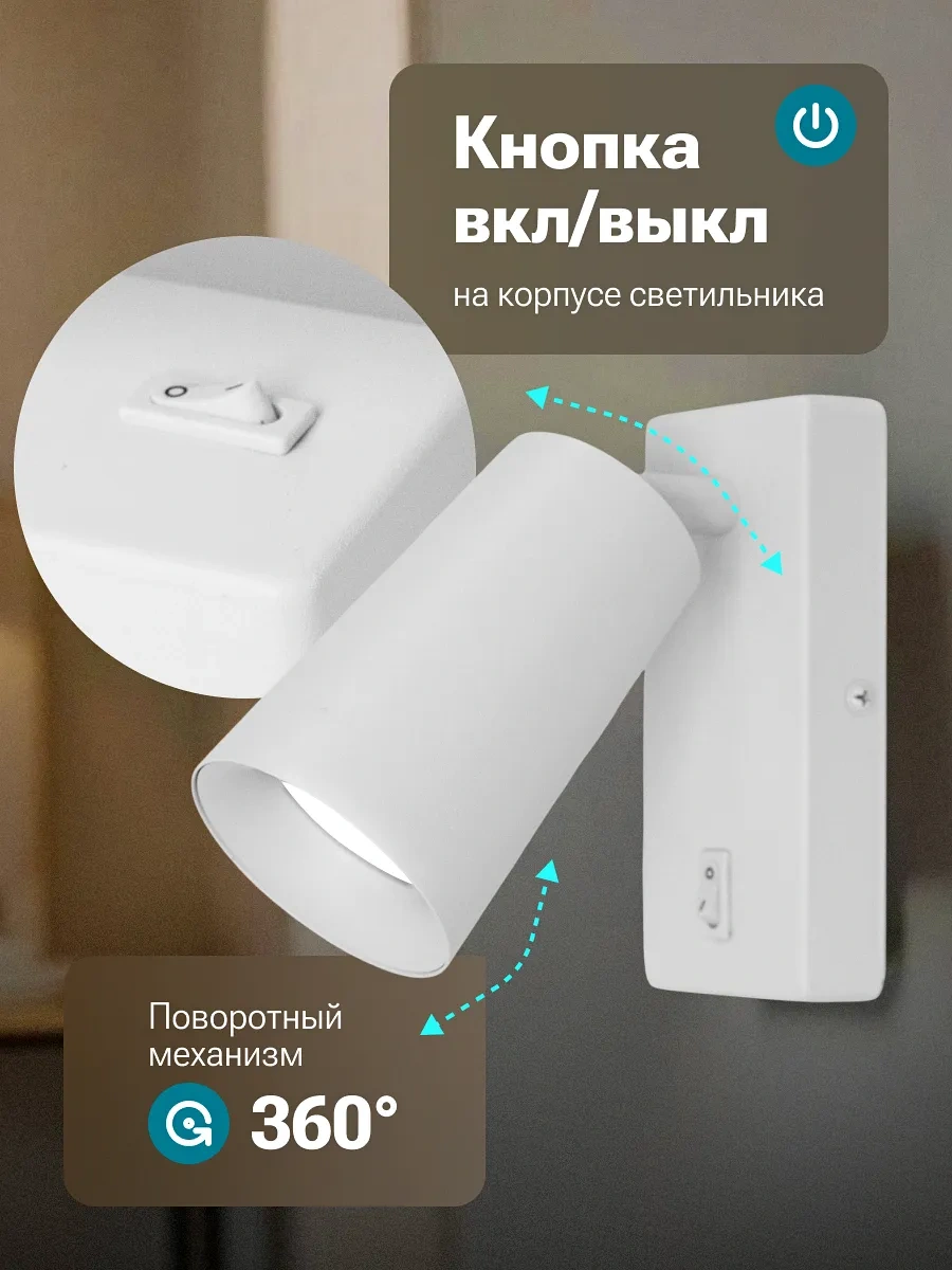 General Lighting Systems Yatak Odası İçin Duvara Monte Edilen Anahtarlı Gu10 Duvar Lambası 1 Adet 479002672 Beyaz