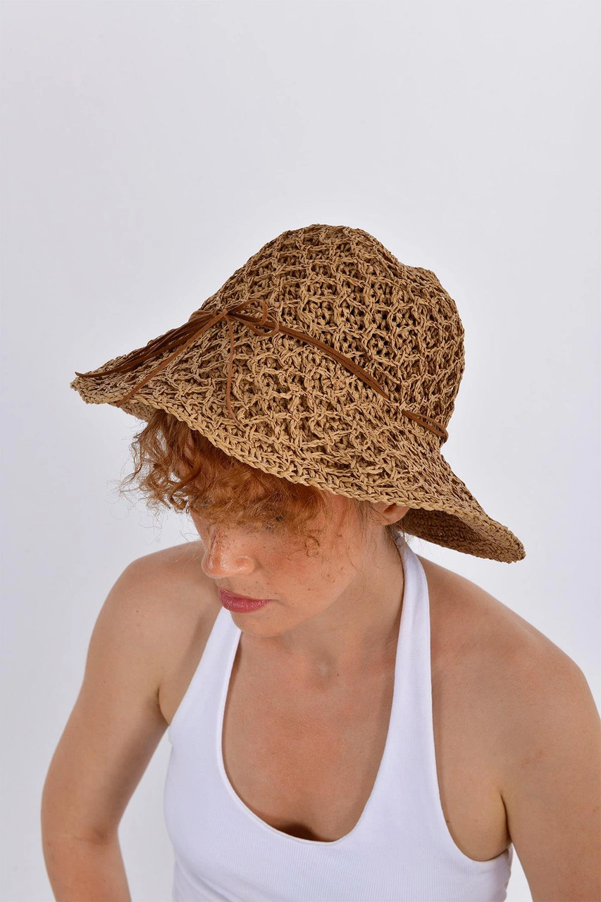 Geniş Kenarlı Bej Rafya Şapka Çok Renkli