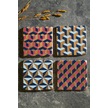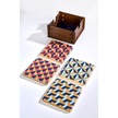 Geometrik Desen Altın Varaklı 4'lü Traverten Bardak Altlığı Çok Renkli