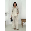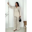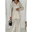 Geometrik Desen Modal Saten Takım Beyaz Beyaz