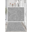 Geometrik Desenli Dekoratif Kaymaz Taban Yıkanabilir Yolluk Antre Hol Halısı Gri