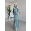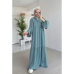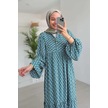Geometrik Desenli Kuşaklı Elbise - Mavi Mavi