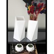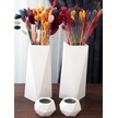 Geometrik Uzun Vazo 20 Cm Ve Geometrik Tealight Mumluk Set 4 Parça Ham Beyaz Beyaz