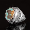 Gerçek Doğal Arizona Turkuaz Taş Yüzük, Erkek Yüzüğü, 925 Ayar Gümüş Yüzük Gümüş