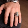 Erkek Ay Yıldızlı Siyah Oniks Taşlı Özel Tasarım 925 Ayar Gümüş Yüzük Şık Model