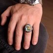 Çift Başlı Kartal Motifli Ay Yıldız Detaylı Mavi Taşlı 925 Ayar Gümüş Polis Yüzüğü