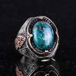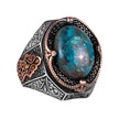 Gerçek Doğal Krysokolla Taşlı Yüzük - 925 Ayar Katı Gümüş Erkek Yüzüğü Gümüş