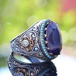 Gerçek Doğal Mavi Safir Taşlı Yüzük, 925 Ayar Gümüş Yüzük, 12.20 Karat, Özel Yüzük Gümüş