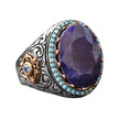 Gerçek Doğal Florit Taş Yüzük, Dini Gümüş Yüzük, 925 Ayar Gümüş Yüzük Erkekler İçin Gümüş