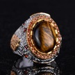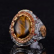 Gerçek Doğal Taş Yüzük - Sultan Yüzük - 925 Ayar Gümüş Yüzük Kaplan Gözü Gümüş