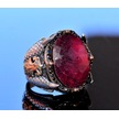 Oval Kırmızı Taşlı 925 Gümüş Erkek Yüzük