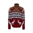 Geyik Desenli Yılbaşı Temalı Balıkçı Yakalı Kırmızı Bej Erkek Triko 001
