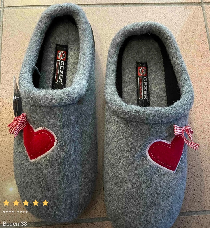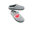 Gezer Kışlık Comfort Taban Nakışlı Kalp Desenli Keçe Ev Terliği Gri