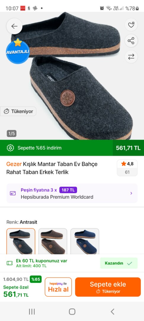 Gezer Kışlık Mantar Taban Ev Bahçe Rahat Taban Erkek Terlik Gt2kmm.16130.01.2d4.g19 Antrasit