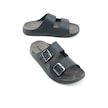 Gezer Naturela Comfort Erkek Yazlık Suni Deri Çift Toka Ayarlanabilir Rahat Taban Günlük Terlik Siyah