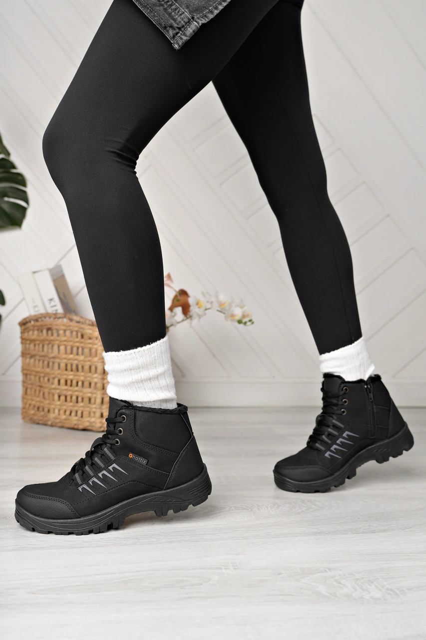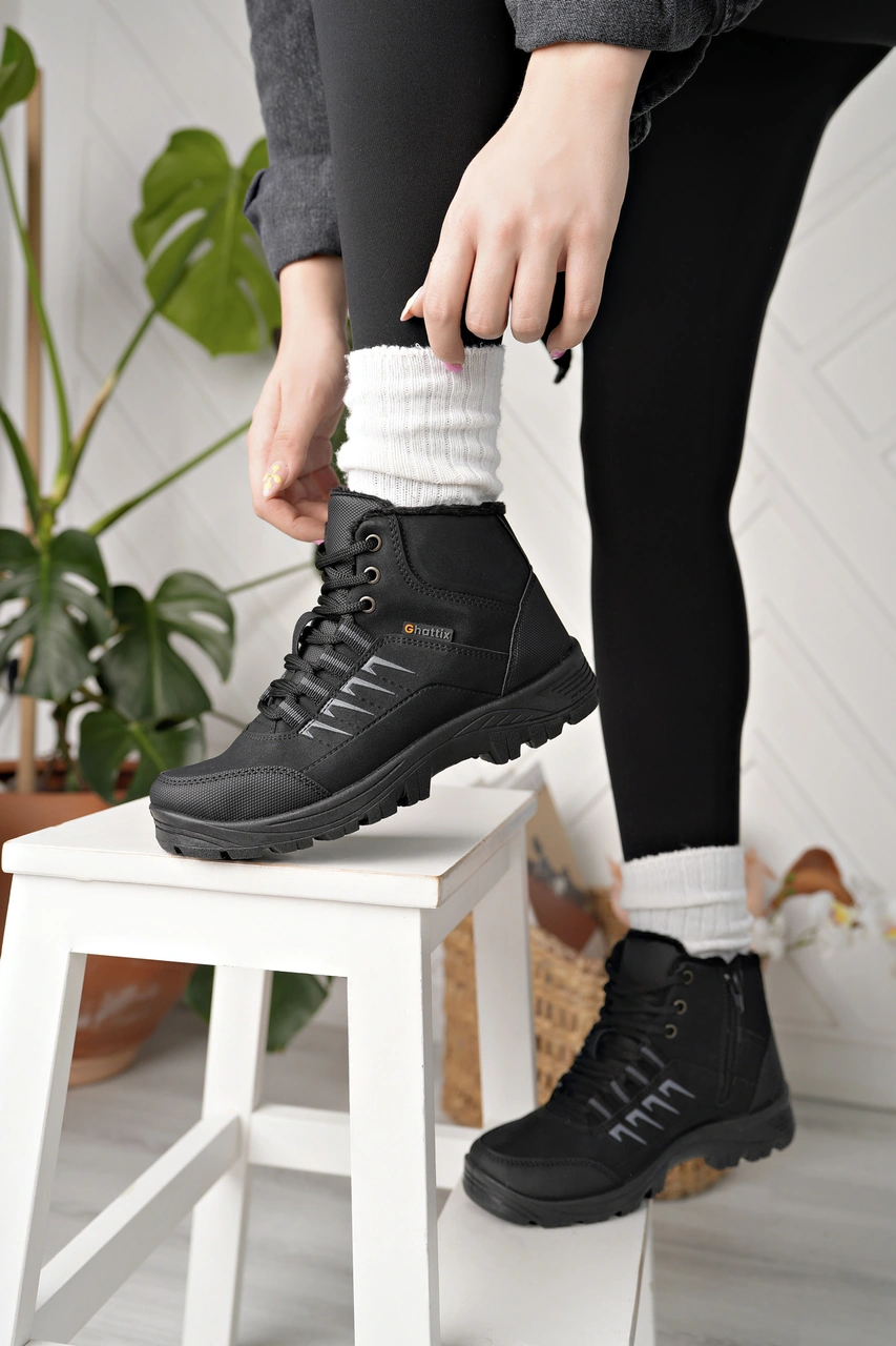 Ghattix Kadın Su Soğuk Dayanıklı Günlük Kışlık Bot Siyah Siyah