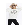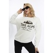 Gidia Kadife The Alps Desenli Ekru Yumuşak Dokulu Regular Fit Bisiklet Yaka Kadın Sweatshirt Ekru
