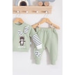 Gift For You Desenli 2'li % 100 Pamuk Erkek Bebek Takımı Yeşil