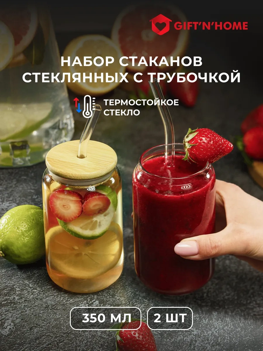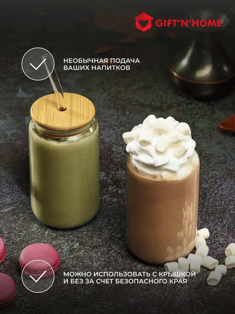 Gift'n'home Kapaklı Cam Bardak Seti Ve Pipetli İçecek Seti 219946039 Beyaz